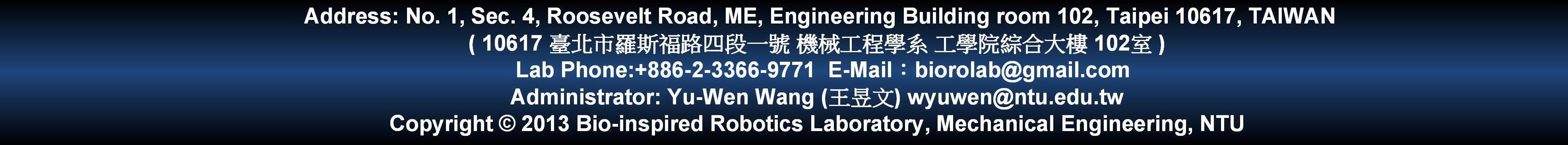 仿生機器人實驗室(Bio-inspired-Robotics Laboratory, 簡稱BioRoLa)的研究主軸,在於探索與研發各式可以產生運動的系統,從瞭解分析生物與非生物之運動行為本質開始(外顯現象和內在的物理機制),建立適合的運動模型,進而推展到「人造系統」之設計、製造、機電架設、系統控制、運動行為分析與規劃、造最後的系統整合。於科學面,冀望以發展移動機器人之方式,來輔助探討生物於不同外在環境下在運動方式上的演化與發展;於工程面,則試圖整合人類工程發展上現有之智識,來開發可應用於多樣化外在環境下之各式運動平台。